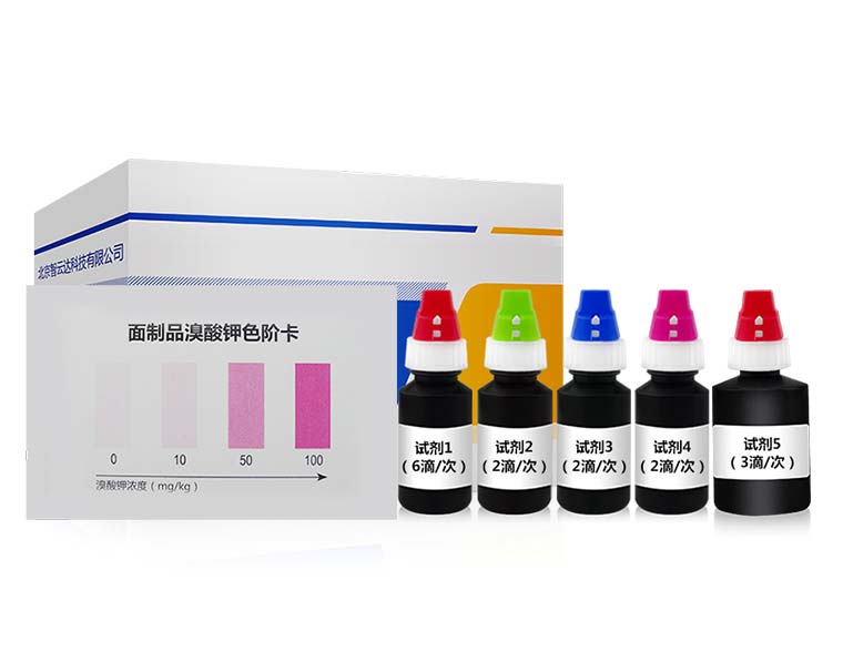 1.將顯色管與面粉中溴酸鉀快速檢測(cè)色階卡進(jìn)行比較, 即可檢出被測(cè)樣品中溴酸鉀的含量。