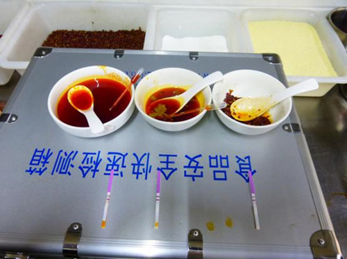 此次整治行動中,督查組攜帶了智云達食品安全快速檢測箱,對沃爾瑪、雞汁火鍋等食品流通單位和餐飲單位現(xiàn)場制作的火鍋底料和預(yù)包裝的火鍋調(diào)料、調(diào)味品等6批樣品進行了快檢篩查,未發(fā)現(xiàn)有非法添加使用罌粟殼的行為。