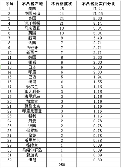 分析顯示,美國、中國臺灣在不合格進(jìn)境肉制品名單中共有89批次,占不合格進(jìn)境肉制品批次的34.49%,超過總量的1/3。