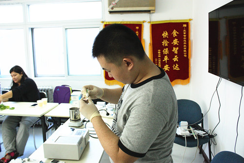 下午由河北農(nóng)業(yè)大學(xué)食品質(zhì)量與安全專業(yè)于鳴訓(xùn)講師帶領(lǐng)學(xué)員自己動(dòng)手操作檢測了油菜中的農(nóng)藥殘留,牛奶中三聚氰胺檢測、枸杞二氧化硫檢測、亞硝酸鹽檢測,地溝油檢測等。學(xué)員熱情度很高,課程結(jié)束了還意猶未盡,在輕松的學(xué)習(xí)氛圍中進(jìn)一步了解快檢,應(yīng)用快檢。