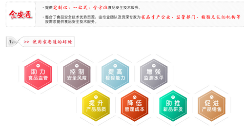 食安通——食品安全與質量監管技術支持服務平臺,提供定制化、一站式、全方位質量技術服務。整合了食品行業優勢資源,由專業團隊及專家團隊為食品生產企業、監管部門、檢驗及認證機構等按需求提供定制化服務。它還有以下諸多好處: