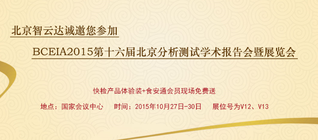 第十六屆北京分析測試學(xué)術(shù)報(bào)告會(huì)暨展覽會(huì)(BCEIA 2015)于2015年10月27日-30日在國家會(huì)議中心如期舉行。北京智云達(dá)科技有限公司受邀參展,展位號(hào)為:V12、V13,智云達(dá)誠邀您蒞臨參展。