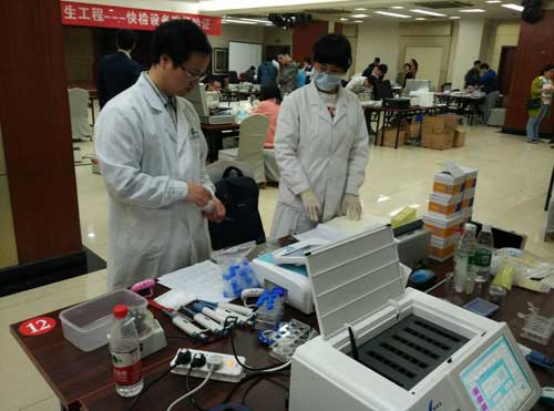 本次驗(yàn)證活動(dòng),包括多位食藥監(jiān)管理人員、媒體朋友,20余家快速檢測(cè)企業(yè)及技術(shù)人員參加,北京智云達(dá)科技股份有限公司也在本次投標(biāo)的現(xiàn)場(chǎng)驗(yàn)證企業(yè)之中。活動(dòng)的開展通過現(xiàn)場(chǎng)檢測(cè)、現(xiàn)場(chǎng)考核、比對(duì)實(shí)驗(yàn)等方式,向下屬食藥監(jiān)部門推薦檢測(cè)效果好、檢測(cè)時(shí)間短、檢測(cè)方法便攜的投標(biāo)企業(yè)。