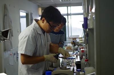 北京智云達技術工程師楊老師和趙老師將準備好的樣品分別進行標號,通過智云達自主研發生產的快速檢測產品:亞硝酸鹽速測管,對樣品進行快速檢測試驗。