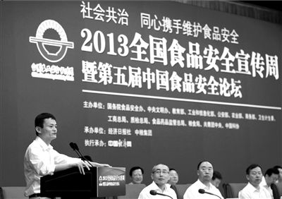大自然保護(hù)協(xié)會(huì)中國(guó)主席馬云在全國(guó)食品安全宣傳周啟動(dòng)儀式上致辭。