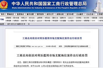 新華網(wǎng)北京11月16日電(記者婁奕娟)11月16日,國家工商行政管理總局官網(wǎng)發(fā)布處罰決定書稱,2009-2013年期間利樂集團(簡稱利樂)有關(guān)企業(yè)濫用市場支配地位案件,對其依法作出行政處罰,其中處罰款近6.68億元人民幣。