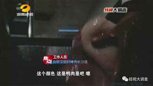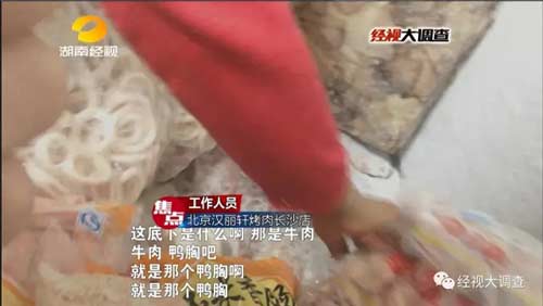 隨后,這些冰凍鴨胸肉又被偽造成牛肉,送上了餐桌,漢麗軒烤肉店的工作人員自己都聲稱(chēng)不會(huì)吃。