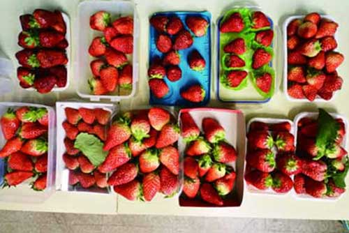 樣品來源:東四環(huán)附近的小攤、街邊攤7份,海淀附近的小攤4份,包括紅顏、豐香、甜查理幾個品種。
