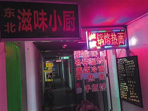 去年7月26日,像素小區,一樓樓道里餐館密集。資料圖片