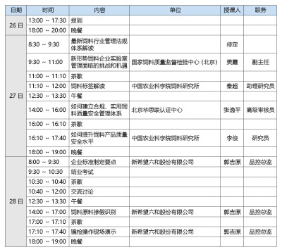 為幫助企業(yè)深入學(xué)習(xí)理解飼料法律法規(guī),了解飼料行業(yè)監(jiān)督檢查情況,使飼料行業(yè)從業(yè)者規(guī)范飼料生產(chǎn)、經(jīng)營(yíng)行為,強(qiáng)化管理,滿足飼料企業(yè)對(duì)新法規(guī)和檢測(cè)實(shí)驗(yàn)室管理的需求,解決目前飼料企業(yè)工作中遇到的疑難問(wèn)題,北京智云達(dá)科技股份有限公司將于2018 年12 月26 日~28 日在北京舉辦“飼料行業(yè)法律法規(guī)培訓(xùn)班”。現(xiàn)將有關(guān)事宜通知如下: