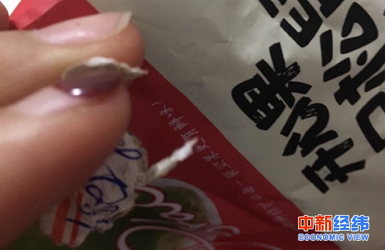 消費(fèi)者徐麗(化名)告訴中新經(jīng)緯客戶端,自己3月4日在唯品會(huì)上購(gòu)買了一些三只松鼠的開(kāi)心果,沒(méi)曾想竟在里面吃出了一塊爛掉的標(biāo)簽。