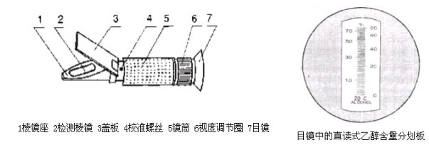4.4 取酒樣 5~7 滴放在檢測(cè)棱鏡面上,徐徐合上蓋板,以下操作與 3.2 相同。視場(chǎng)明暗分界線處所示讀數(shù),即為乙醇含量%。重復(fù)操作幾次,使讀數(shù)穩(wěn)定。4.2 取酒樣 5~7 滴放在檢測(cè)儀棱鏡面上,緩緩合上蓋板。讀取視場(chǎng)明暗分界線處所示讀數(shù),即為乙醇百分含量。重復(fù)操作幾次,使讀數(shù)穩(wěn)定。