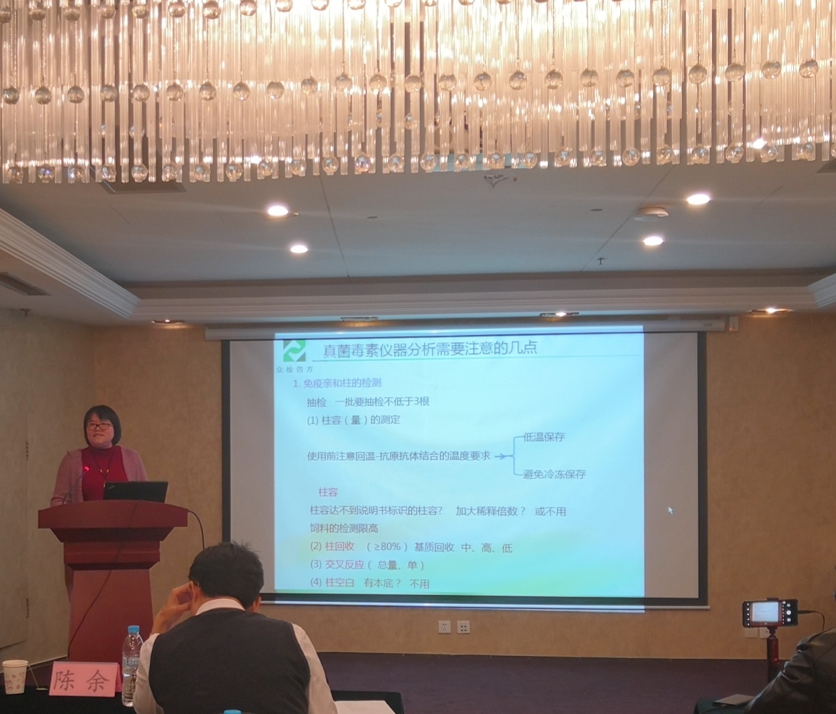 11月26日,2018年京津冀黑遼魯豫飼料質(zhì)量安全檢測技術(shù)交流會在天津舉辦。我司的王文珺博士在交流會上做了《飼料及其原料中真菌毒素污染檢測方法探究》的報告,向與會代表介紹了北京智云達(dá)的全資子公司眾檢四方在真菌毒素檢測的資質(zhì)、工作基礎(chǔ)和工作經(jīng)驗。此外,王博士還向大家介紹了眾檢四方在畜禽糞便重金屬污染檢測方面做的領(lǐng)先性工作。畜禽糞污有害物質(zhì)分析檢測及控制是習(xí)近平總書記關(guān)心的重大生態(tài)環(huán)境工程。