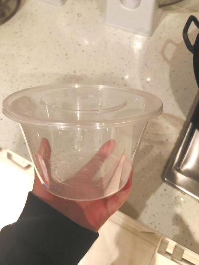在確認(rèn)價(jià)格和重量后,男店員開始給牛肉切塊,當(dāng)屠先生拿到裝盒的鹽水牛肉后發(fā)現(xiàn),盒子很沉,盒子似乎要占很多重量。連續(xù)觀察多位排隊(duì)買熟食的居民后屠先生又發(fā)現(xiàn),只要來該店買熟食,店家都是將盒子與熟食一起稱重,也就是盒子都被當(dāng)作熟食稱重后賣給居民。