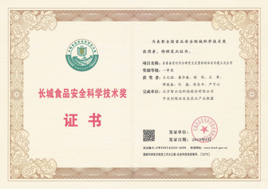 智云達榮獲長城食品安全科學技術獎一等獎