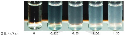 甜蜜素經酸化后與顯色試劑反應,生成一種乳白色沉淀,穩(wěn)定性較好,而且混濁度與溶液中甜蜜素的含量成正比。