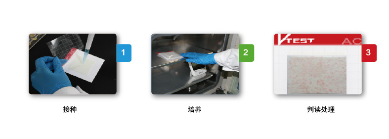 V—TEST ®微生物快速檢測試紙片為預制型培養(yǎng)基系統(tǒng),由上層薄膜層、中層無紡布、下層底板組成。將特定的培養(yǎng)基和指示劑附著在載體上,通過微生物在上面生長、指示劑顯色來測定食品中的微生物。本適用于食品及原料中致病菌的測定,也可以用于食品加工環(huán)境中的致病菌的測定以及現(xiàn)場執(zhí)法等檢測。